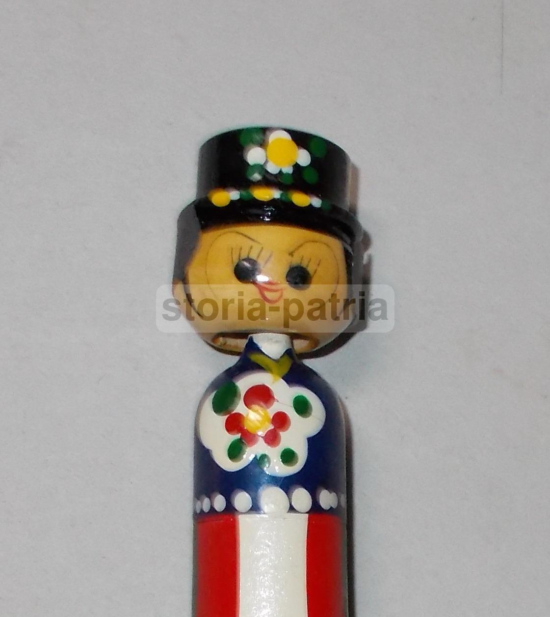 Curiosa Bambolina Policroma, Inusuale Pupazzetto In Legno, Testa Oscillante, Corea